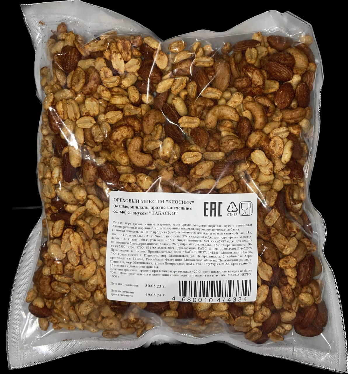 Главная - Закуска - Арахис соленый / в специях - Орехи Набор: миндаль, кешью и арахис Соус табаско, 1кг