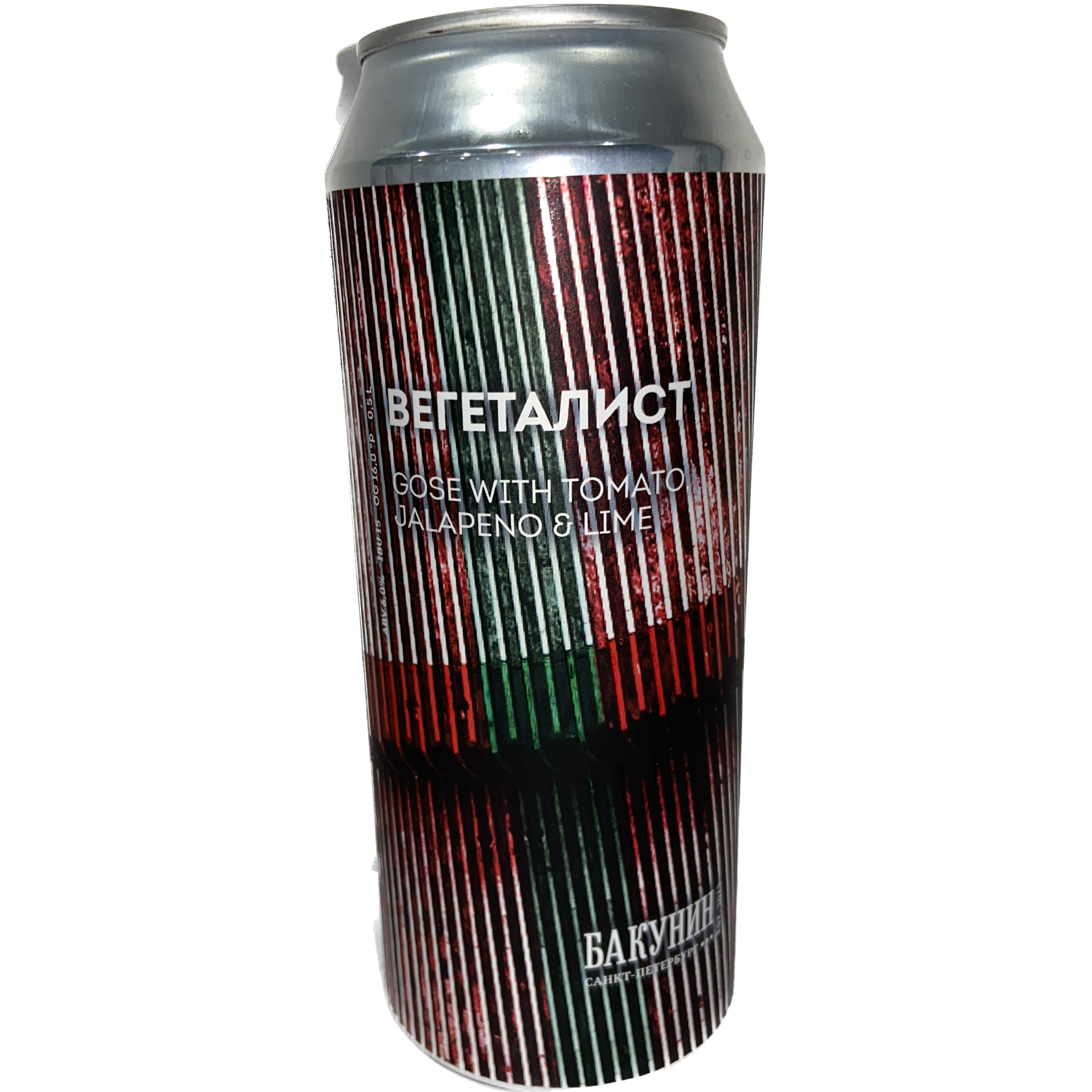 Главная - Бутылочные напитки - Bakunin фасовка - Пивной напиток Bakunin ВЕГЕТАЛИСТ: Tomato, Jalapeno, Lime ж/б 0,5 л